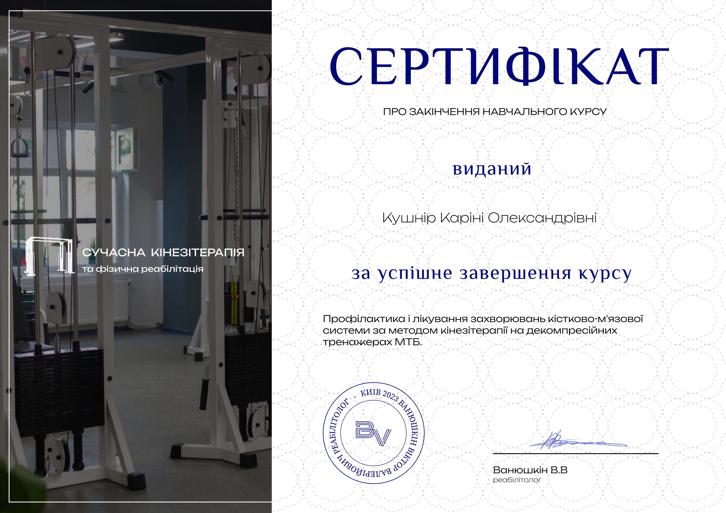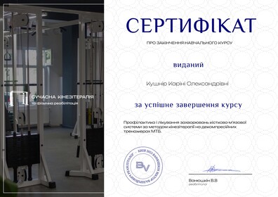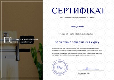 Дополнительно окончены курсы по массажу и методике сухой иглы, что позволяет комплексно подходить к лечению и восстановлению пациентов.