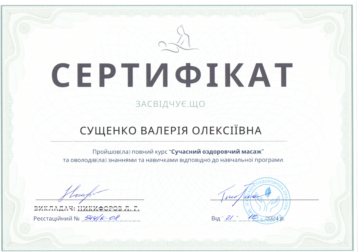 Хочу відзначити Валерію, як достатньо кваліфікованого реабілітолога, яка уважно ставиться до кожного пацієнта, доступно пояснює вправи та контролює правильність їх виконання.