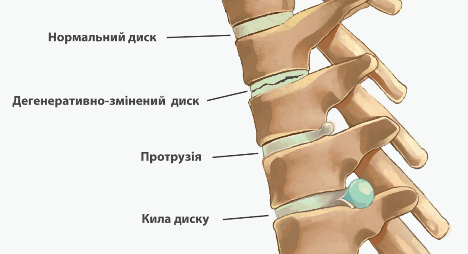 Звичайна грижа: грижа міжхребцевого диска виникає, коли ядро диска видавлюється за його звичайні межі через ушкодження або зношування.