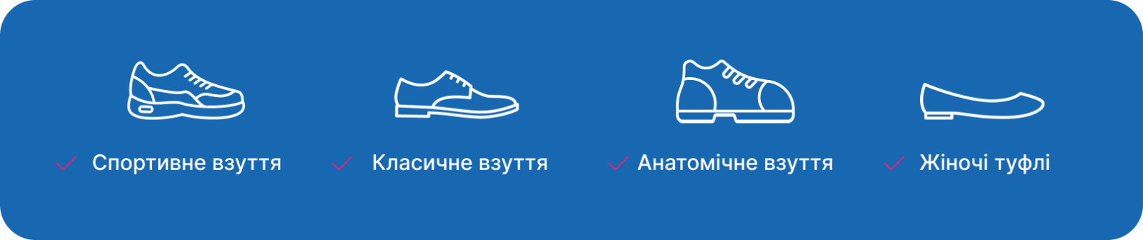 - Ідеальна відповідність анатомії стопи кожного клієнта.