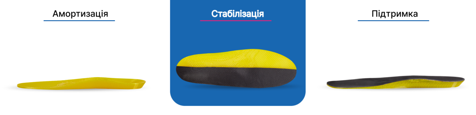 - Амортизаційний ефект— зменшує ударне навантаження на стопи, коліна та хребет.